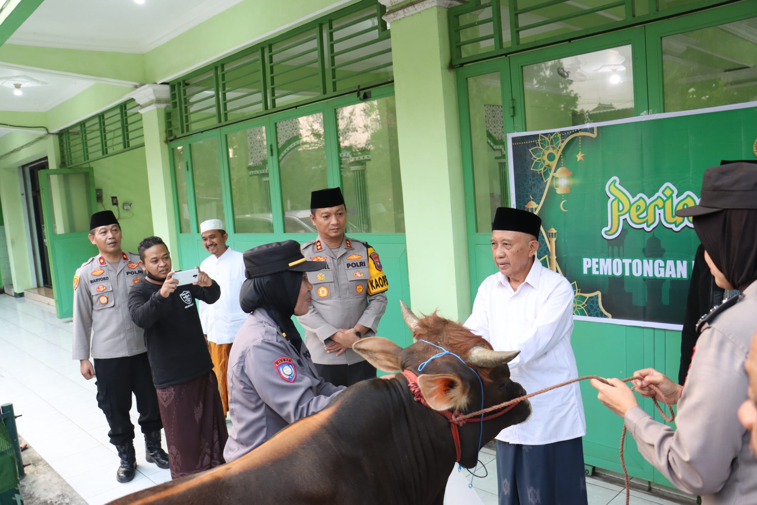 Bakti Qurban, Kapolres Didampingi Polwan, Berikan Sapi Kepada Ketua PCNU Kota Mojokerto
