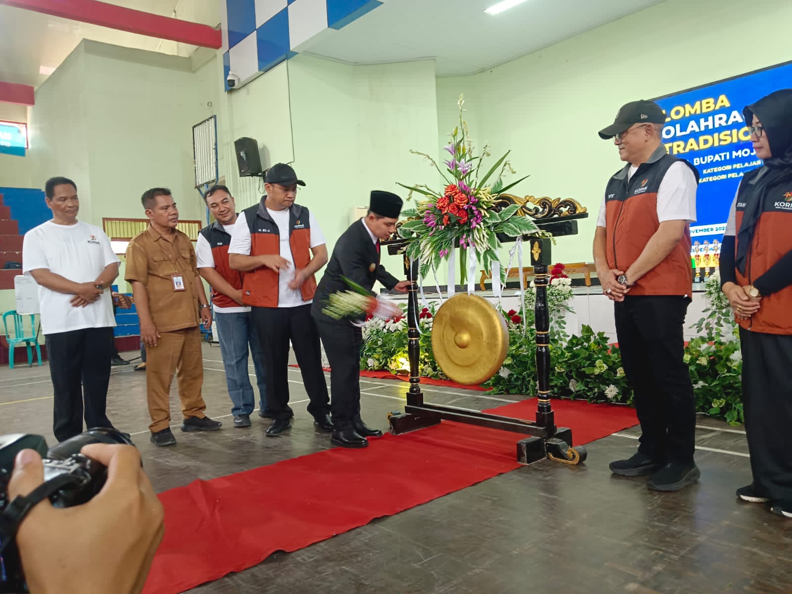 Hadir dalam acara itu adalah Bupati Mojokerto Dr. H. Muhammad Ali Barra. LC.M.Hum, Wakil Bupati dr. Muhammad Rizal Oktavian, Kepala Kementerian Agama Kabupaten Mojokerto, Plt. Dinas Pendidikan, Penasehat dan ketua KORMI Kabupaten Mojokerto, kepala OPD, ketua MKKS, K3S, MGMP, KKG dan PJOK Kabupaten Mojokerto, serta para guru pendamping. (Jo)
