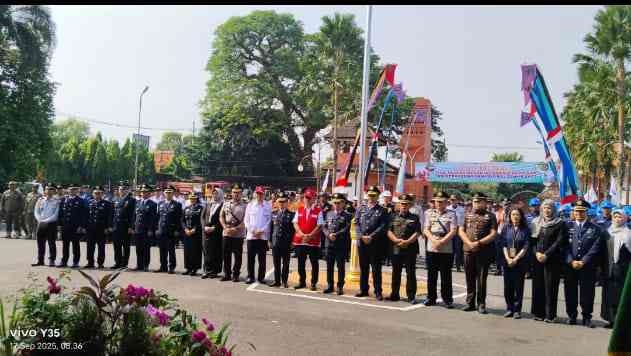 MOJOKERTO, Jejakjurnalis.id -Bupati Mojokerto, Muhammad Albarraa, memimpin upacara peringatan HUT PMI (Palang Merah Indonesia) ke-80 dan Hari Perhubungan Nasional 2025 di Pendopo Graha Maja Tama, Mojokerto, Jalan A. Yani 16 Kota Mojokerto. Rabu (18/9) pagi.
