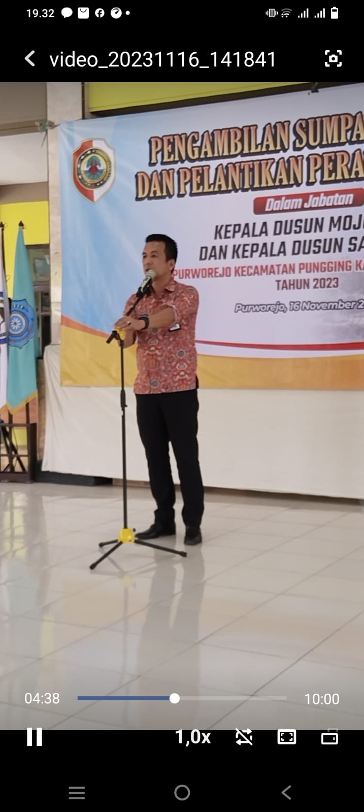 Mojokerto, Jejakjurnalis,id – Pelaksanaan Pengambilan Sumpah Jabatan dan Pelantikan Perangkat Desa Purworejo, Jabatan Kepala Dusun Mojodadi atas nama Nur Purwo Hardianto, dan Kepala Dusun Saradan atas nama Mohammad Zainal Arif yang bertempat di Pendopo Kantor Desa Purworejo Kecamatan Pungging, Kamis, 16/11/2024 November 2023. Siang.