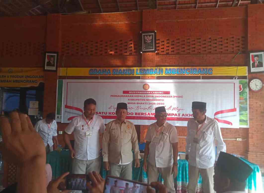 MOJOKERTO, Jejakjurnalis.id – Musyawarah Cabang (Muscab) Persaudaraan Kepala Desa Indonesia (PKDI) Se-kabupaten Mojokerto masa bakti 2025-2030 dilaksanakan di Wisata Lembah Mbencirang Desa Kebontunggul, Gondang Mojokerto, Rabu (14/05) Siang.