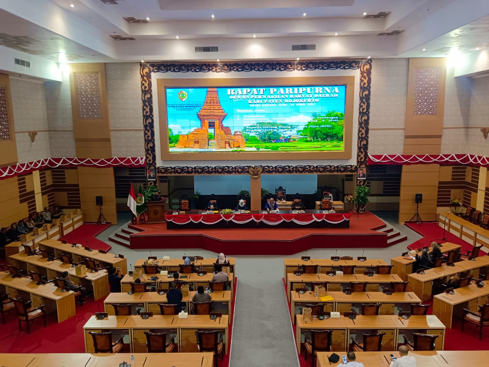 Rapat dipimpin oleh Ketua DPRD Kabupaten Mojokerto Ayni Zuhro, sedangkan Supriyato, SH sebagai juru bicaranya untuk membacakan jawaban atas Raperda tersebut.