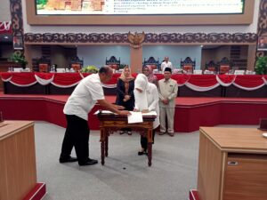“Di akhir rapat paripurna ini dilakukan penandatangan bersama antara Bupati Mojokerto dan DPRD kabupaten Mojokerto terhadap raperda yang disetujui tersebut.’