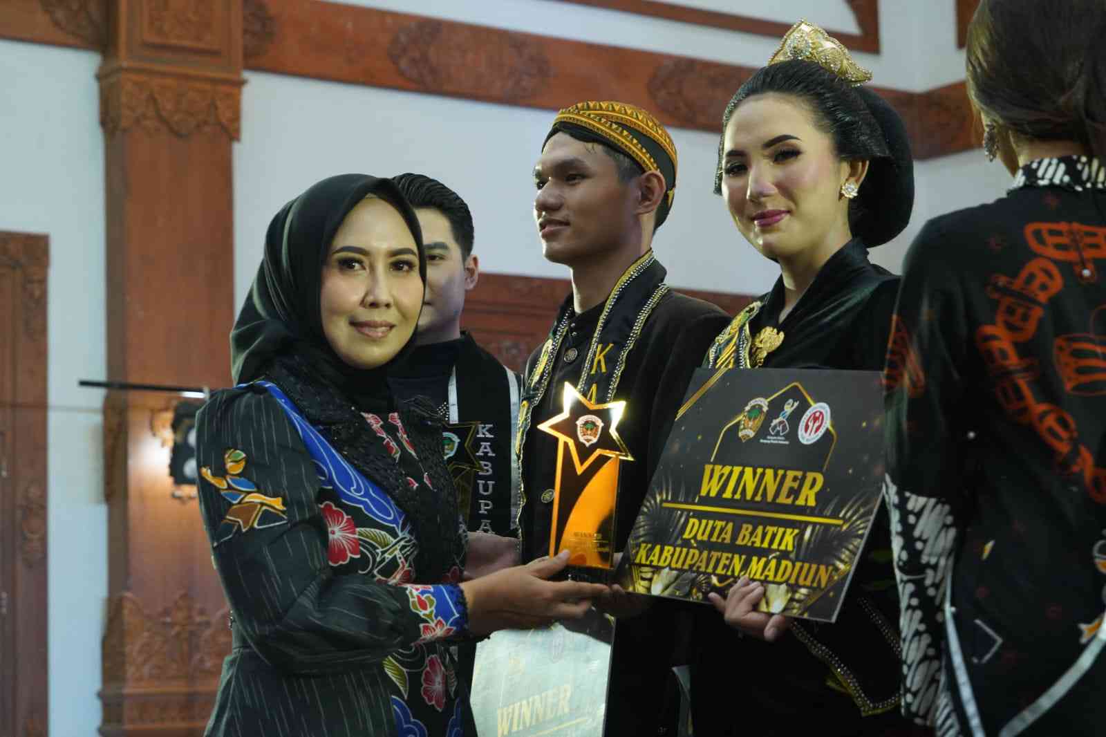 Selain gelar Duta Batik putra dan putri, terdapat kategori Kangmas dan Nimas Duta Wisata Kabupaten Madiun 2023, dimenangkan oleh Ilham Ananda Wahyu (SMK PGRI 1 Mejayan), dan Luh Andana Warih (SMAN 1 Geger). (Ben)