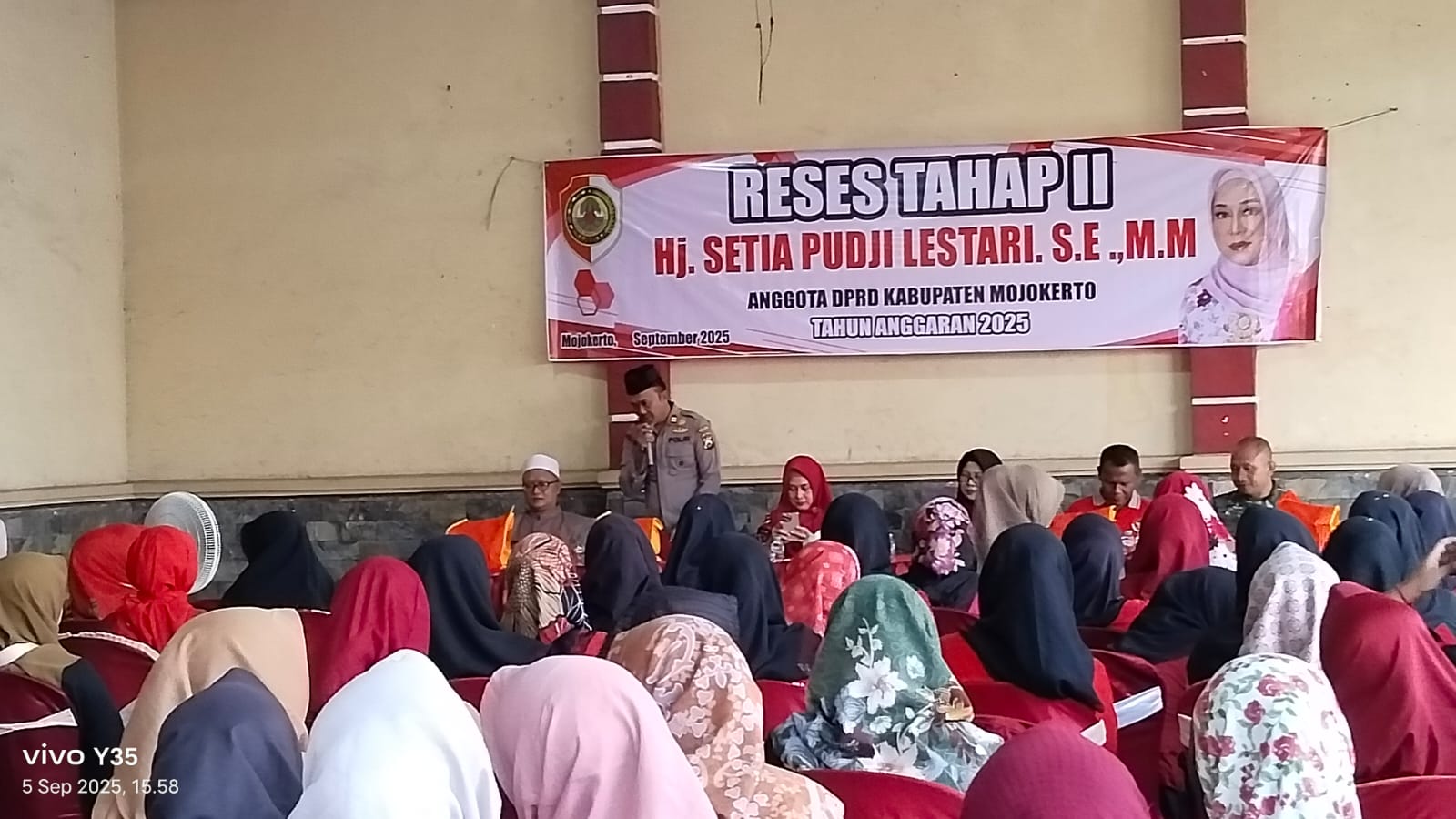 Anggota DPRD dari Fraksi PDI Perjuangan Hj. Setia Pudji Lestari, S.E., M.M melaksanakan reses kunjungan di Daerah Pemilihan III, yang meliputi Kecamatan Puri, Sooko, dan Trowulan, di Desa Kedungmaling Jum’at, (5/09/2025). Sore.