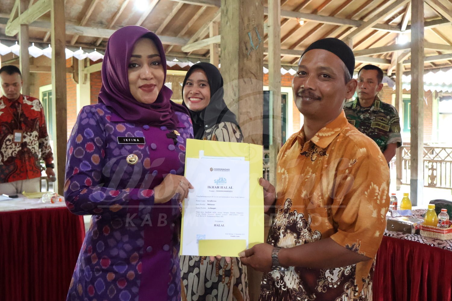 Bupati Ikfina menyampaikan terima kasih kepada para pelaku IKM yang telah bersedia untuk berprosee, dalam hal ini untuk menambah nilai plus di masing-masing produknya dengan memiliki sertifikat halal.
