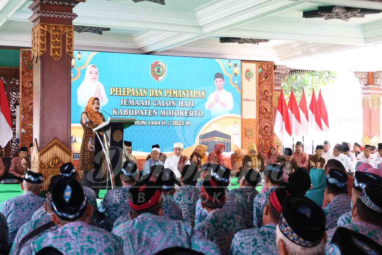 ‘ Saya atas nama Pemkab. Mojokerto dan masyarakat Kabupaten Mojokerto bahagia atas keberangkatan panjenengan, selamat jalan, mudah-mudahan Allah selalu menyertai, memberikan kesehatan, kelancaran sehingga bisa menjalankan ibadah dengan lancar.” (Jo)