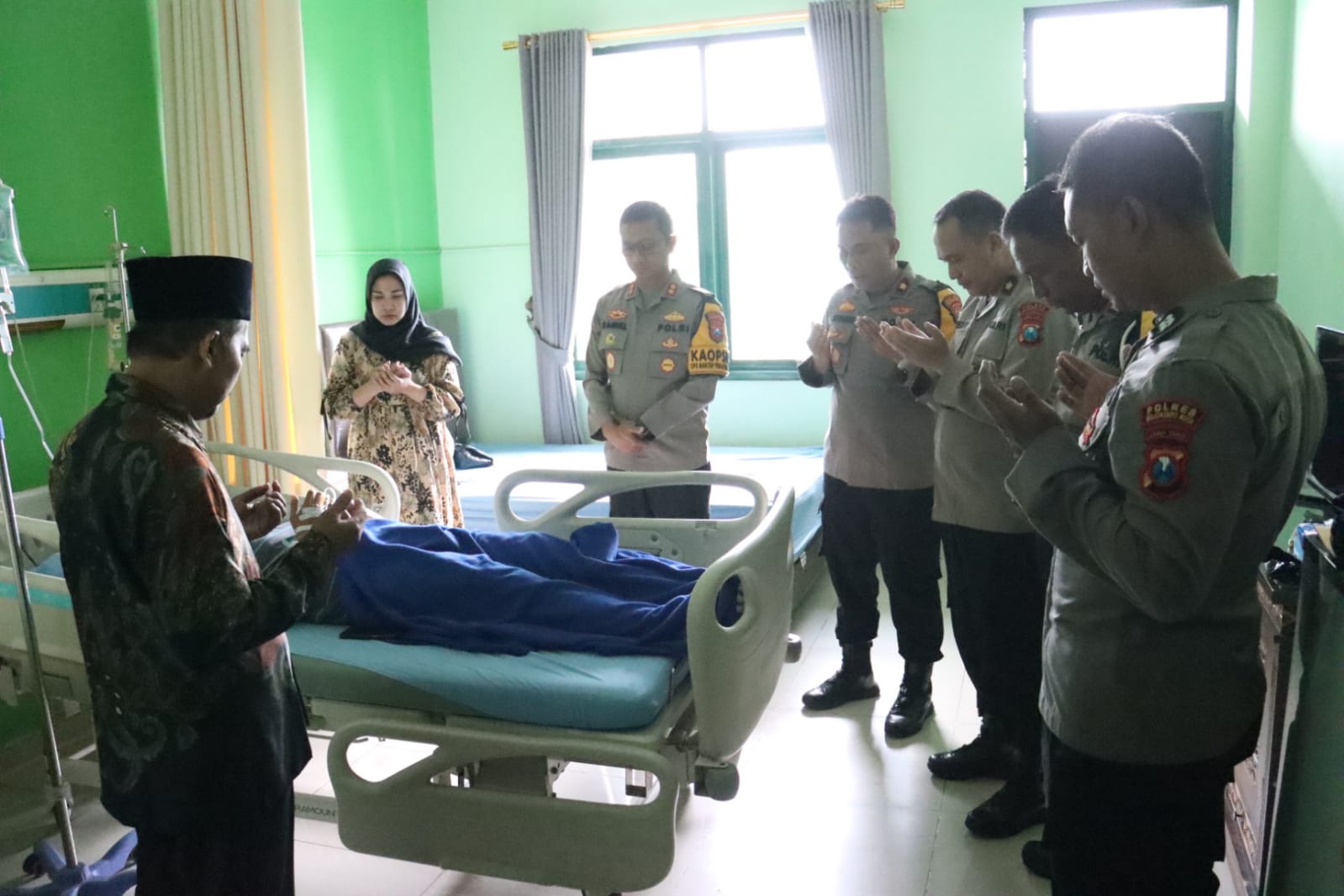 “Hari ini, saya datang mengunjungi Bripka Angga Edwi, Personel Unit Reskrim Polsek Magersari Polres Mojokerto Kota yang sedang dirawat di RS Sakinah Mojokerto.”