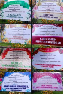 Adapun kiriman tersebut dari Kepala Desa : Pugeran Kecamatan Gondang, Mlaten Kecamatan Puri, Randugenengan Kecamatan Dlanggu, Baureno Kecamatan Jatirejo, Tanjung Keningo Kecamatan Pacet, Sawo Kecamatan Jetis, Kembang Belor Kecamatan Pacet, Lebak sono Kecamatan Pungging, Wringinrejo Kecamatan Sooko, Sooko Kecamatan Sooko, Candiharjo Kecamatan Ngoro, Pacing Kecamatan Bangsal, Gunungsari Kecamatan Dawarblandong, Kades Pandanarum Kecamatan Pacet, Jurianto Bambang Siswantoro. SE (Ketua Paguyuban Kepala Desa Mojokerto). (Jo)