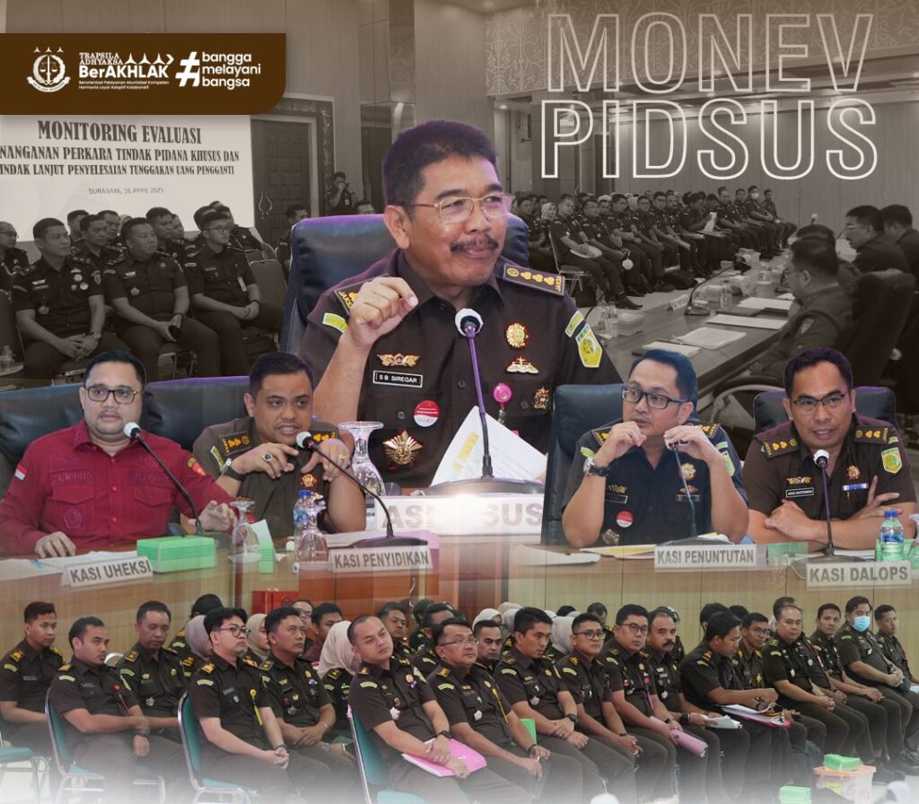 Fokus utama dalam Monev kali ini adalah progres penanganan perkara Tipidsus yang sedang berjalan serta upaya tindak penyelesaian tunggakan uang pengganti lanjut. Dimana acara berlangsung di Aula Sasana Adhyaksa Kejati Jatim pada hari Rabu (16/04/2025)