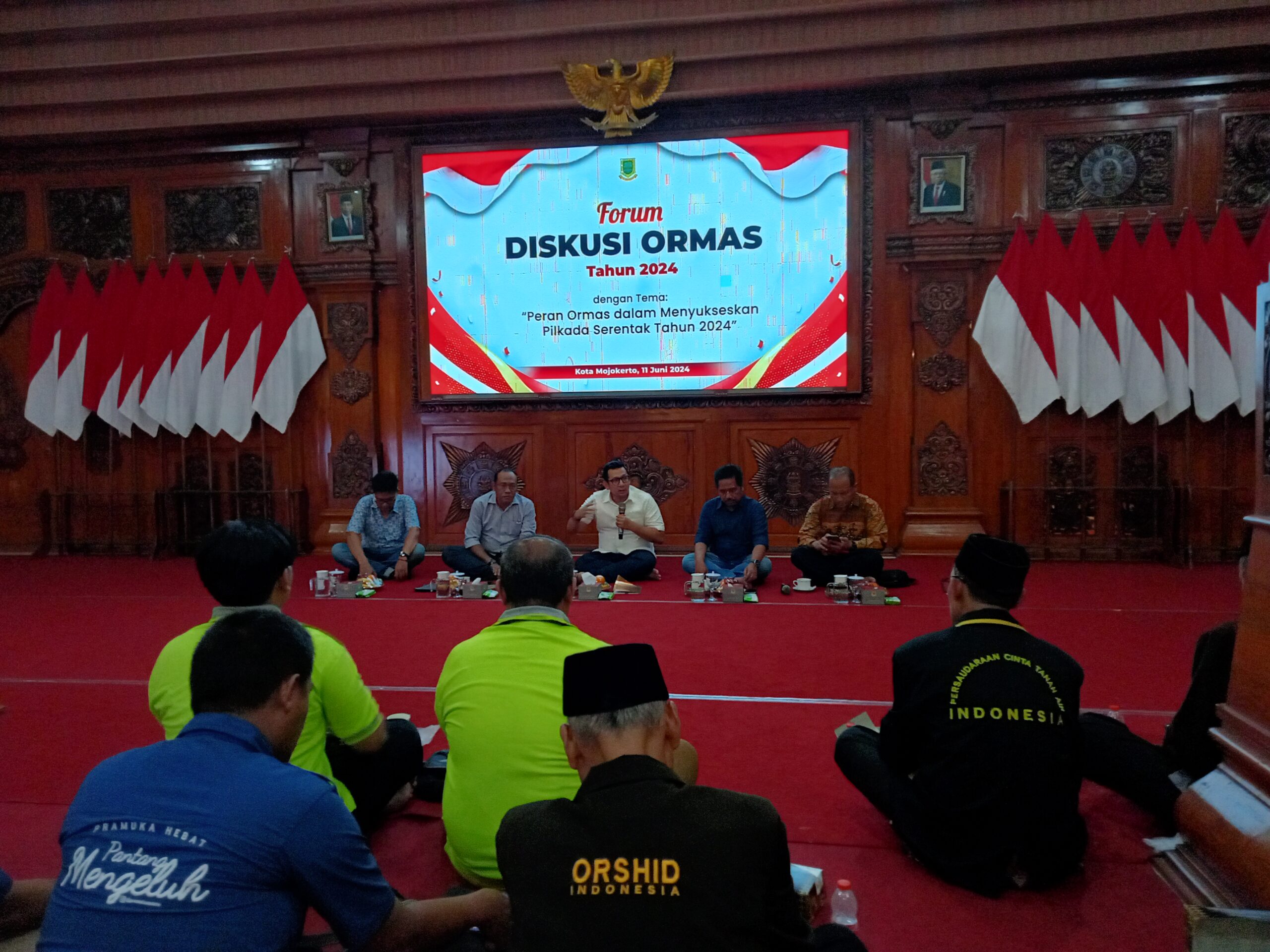 Mojokerto, Jejak jurnalis,id – Pemerintah Kota Mojokerto dalam hal ini Badan Kesatuan Bangsa dan Politik Kota Mojokerto menggelar acara Forum DISKUSI ORMAS Tahun 2024 dengan tema “Peran Ormas Dalam Menyukseskan Pilkada Serentak Tahun 2024.”