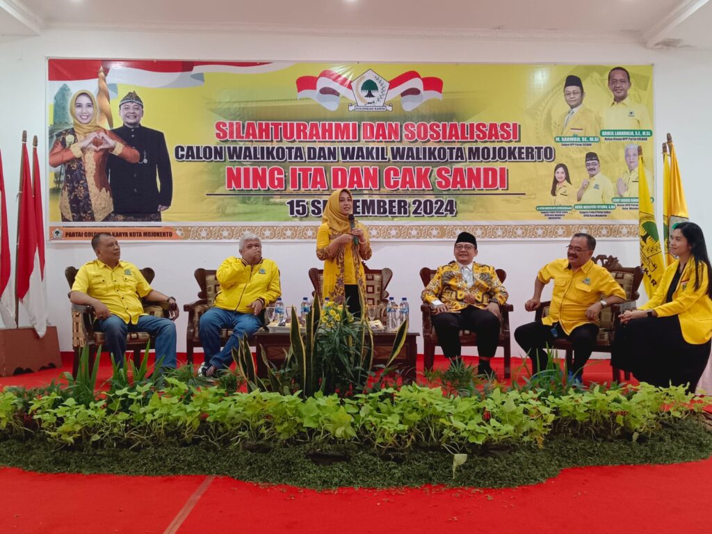Ketua DPD. Partai Golkar Kota Mojokerto, Soni Basuki Raharjo dalam sambutannya, mengatakan “dalam acara sosialisasi ini kita akan dengarkan visi misi Ning Ita – Cak Sandi dan siap memenangkan pasangan Ning Ita – Cak Sandi jilid 2 di Pilkada nanti.” Ujarnya,Lanjut Soni, untuk memanasi mesin politiknya, dan untuk melanjutkan pekerjaannya yang belum selesai, maka ia meneriakan yel-yel berulang kali bersama undangan yang hadir untuk kemenangan Ning Ita – Cak Sandi, serta mengingatkan kembali tanggal 27 November untuk mencoblos Ning Ita – Cak Sandi.” Tegasnya.