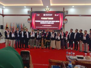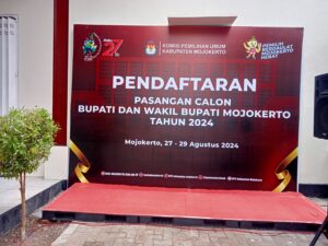 Mojokerto, Jejak jurnalis.id – Komisi Pemilihan Umum (KPU) Kabupaten Mojokerto menerima pendaftar kedua Bacalon pasangan Ikfina Fatmawati – Sa’dulloh Syarofi  (IDOLA), pukul 10.00 WIB, setelah sebelumnya pasangan Muhammad Al Barra – Muhammad Rizal Oktovian (MUBAROK), mendaftar pukul 08.09 Wib, Rabu, (28/8/2024)