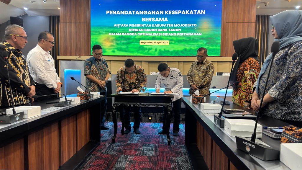 Adapun Penandatanganan Kesepakatan antara Pemkab Mojokerto dan Bank Tanah membuahkan 9 (sembilan) komitmen kerja sama. Secara ringkas dapat diketahui bahwa ruang lingkup kesepakatan ini mencakup inventarisasi, perencanaan, dan optimalisasi potensi tanah Hak Pengelolaan (HPL) Badan Bank Tanah. Hal ini untuk menjamin pengamanan aset negara, yang difokuskan pada penyusunan rencana pengelolaan bagi kepentingan umum, pembangunan ekonomi, serta reforma agraria melalui koordinasi teknis dan peningkatan kapasitas SDM. (Jo)