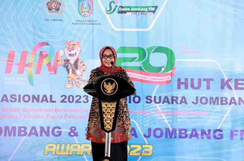 Jombang, Jejakjurnalis.id –“Atas nama pribadi dan Pemerintah Kabupaten Jombang Saya sampaikan ucapan Selamat Hari Pers Nasional 2023 dan Selamat Ulang Tahun Radio Suara Jombang Ke 20,” demikian disampaikan Bupati Jombang Hj Mundjidah Wahab saat menayangkan Resepsi Hari Pers Nasional (HPN) Dan Tasyakuran Hari Ulang Tahun (HUT) Radio Suara Jombang, kegiatan sinergi antara Dinas Kominfo Kabupaten Jombang dan PWI Jombang pada Kamis (23/2/2023) di Halaman Graha Media Radio Suara Jombang Jl. KH Wahid Hasyim No.133 Jombang.