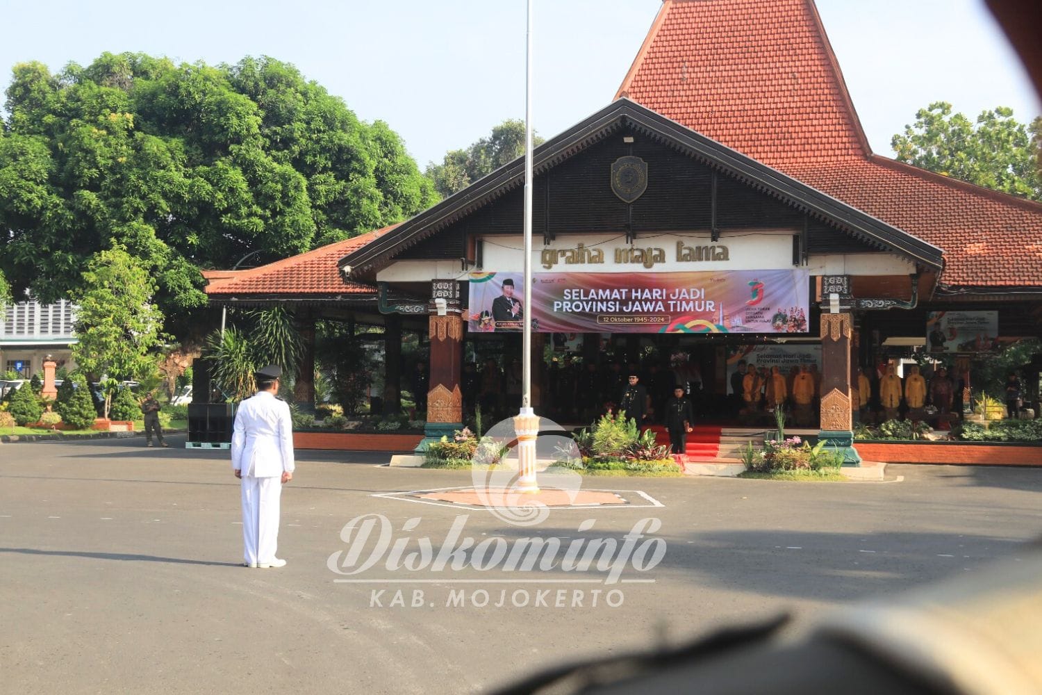 Upacara peringatan Hari Jadi Provinsi Jawa Timur ini dilaksanakan di halaman Pemkab Mojokerto, pada Sabtu, (12/10) pagi.