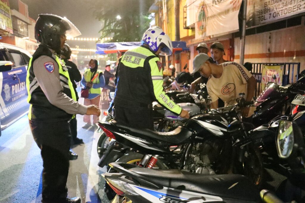 Diawali dari Jl. Bhayangkara, sasaran patroli berlanjut menuju Pasar Ketidur yang menjadi titik kumpul remaja. Saat dilaksanakan penelusuran di lokasi, personel berhasil menemukan bekas botol Miras (Minuman Keras). Selain itu juga ditemukan beberapa kendaraan roda 2 yang tidak sesuai spektek-nya.