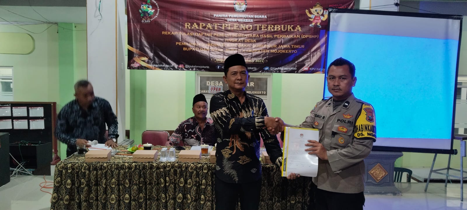Pengamanan Rapat Pleno Terbuka dilaksanakan secara serentak oleh Anggota Bhabinkamtibmas Polsek Jetis Polres Mojokerto Kota. Pihaknya juga turut berkoordinasi dan berkolaborasi dengan penyelenggara Pilkada dan instansi terkait di tingkat desa.