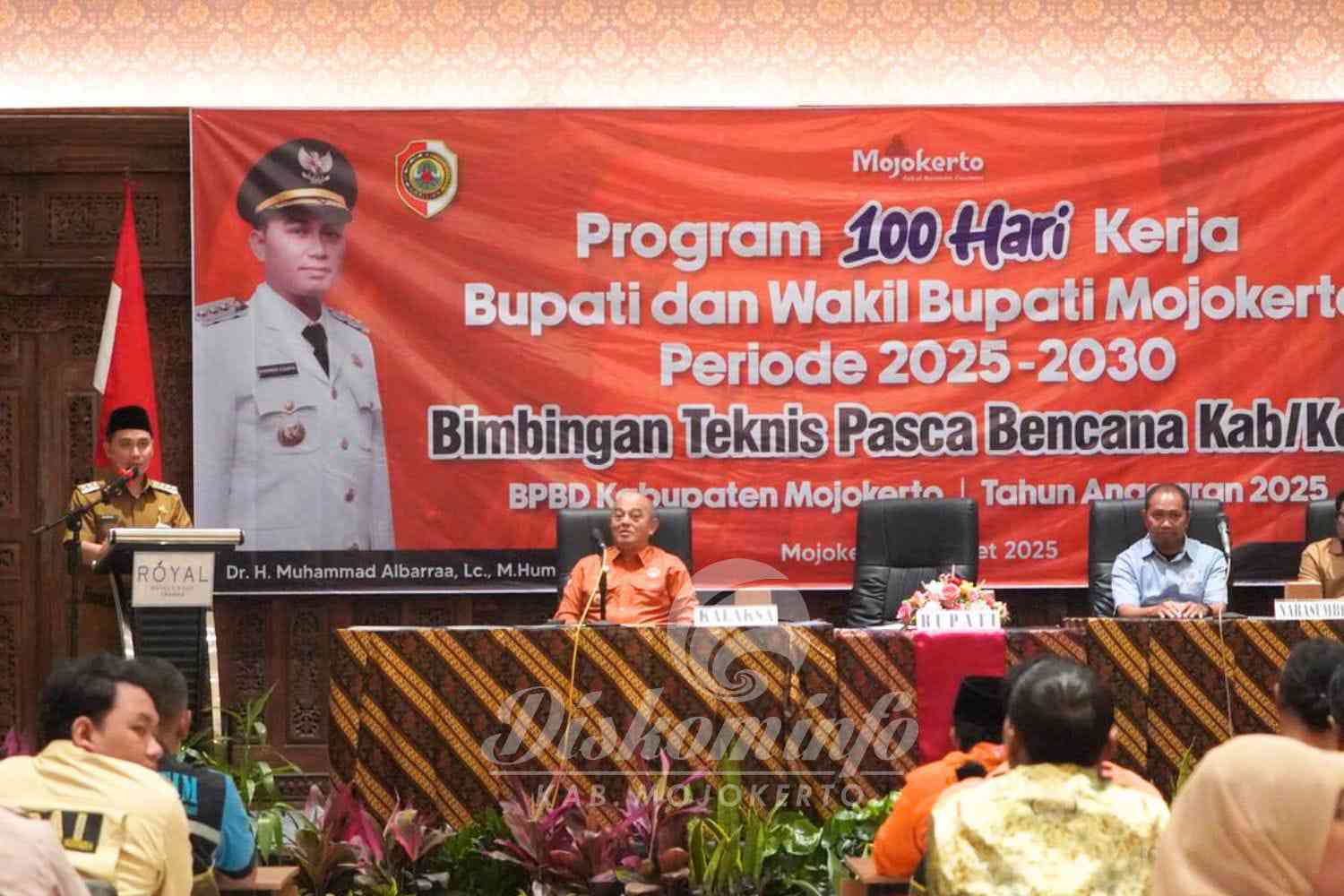 MOJOKERTO, Jejakjurmalis.id – Bupati Mojokerto Muhammad Al Barra menunjukkan keseriusan kepemimpinannya melalui Program 100 hari Kerja Bupati dan Wakil Bupati Mojokerto. Kali ini untuk realisasi program tersebut Gus Barra menggelar sekaligus membuka giat Bimbingan Teknis Pasca Bencana pada Selasa (18/3) siang.