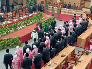 Mojokerto, Jejakjurnalis.id – Pelantikan 50 Anggota Dewan Perwakilan Rakyat Daerah (DPRD) Kabupaten Mojokerto periode 2024-2029 resmi dilantik dan disumpah, sekaligus pemberhentian anggota DPRD periode 2019-2024 di Ruang Graha Whicesa 35 Sooko, Kecamatan Sooko Kabupaten Mojokerto, Senen, (26/8/2024) Siang.