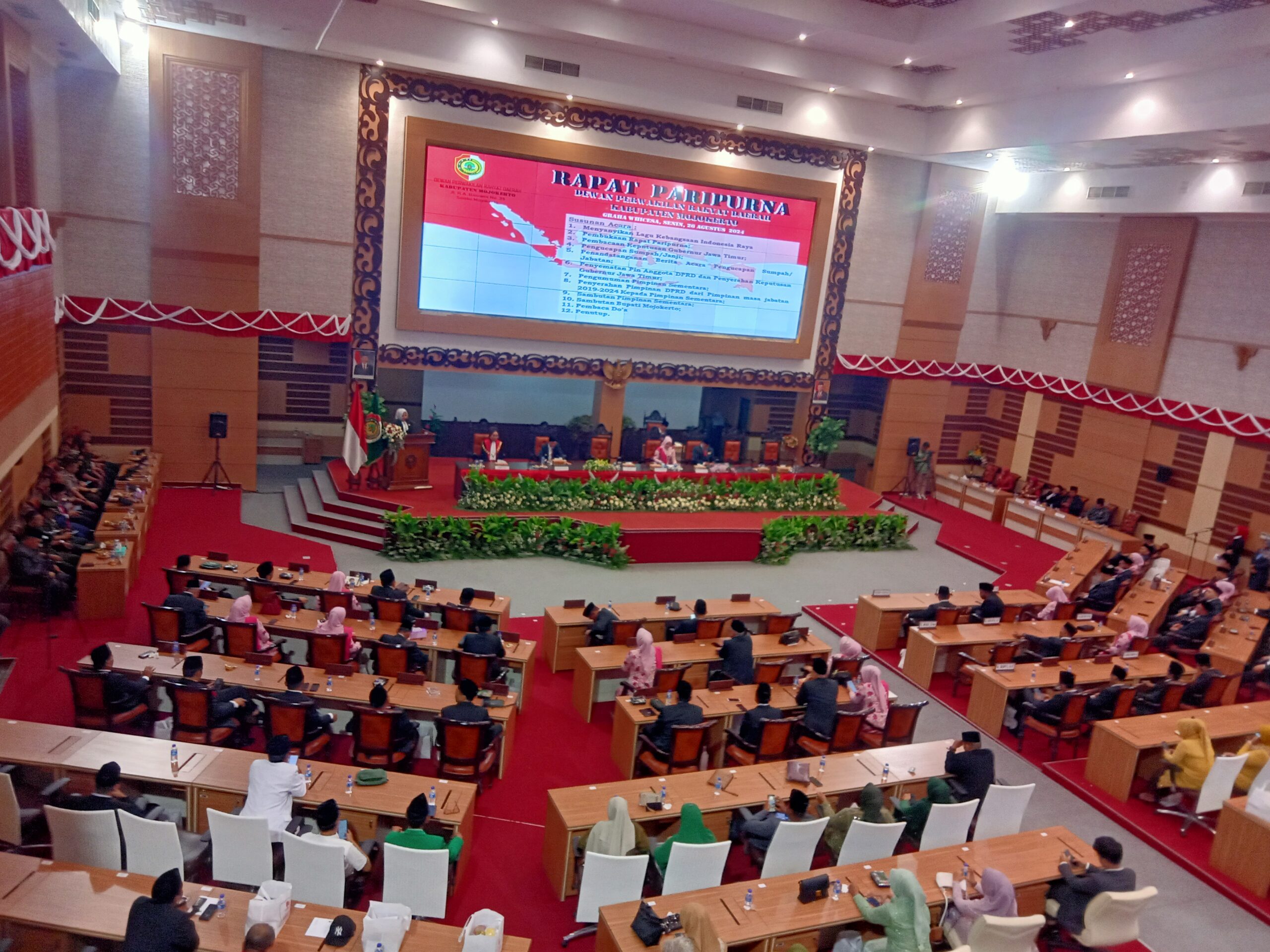 Hadir dalam paripurna itu adalah Bupati dan Wakil Bupati Mojokerto, Forkopimda, Pj. Walikota Mojokerto, Sekdakab, OPD Kabupaten Mojokerto, KPU dan BAWASLU Kabupaten Mojokerto dan perwakilan dari Partai Politik. Rapat ini dipimpin oleh ketua Ayni Zuhro, dan tiga wakil ketua DPRD Kabupaten Mojokerto.