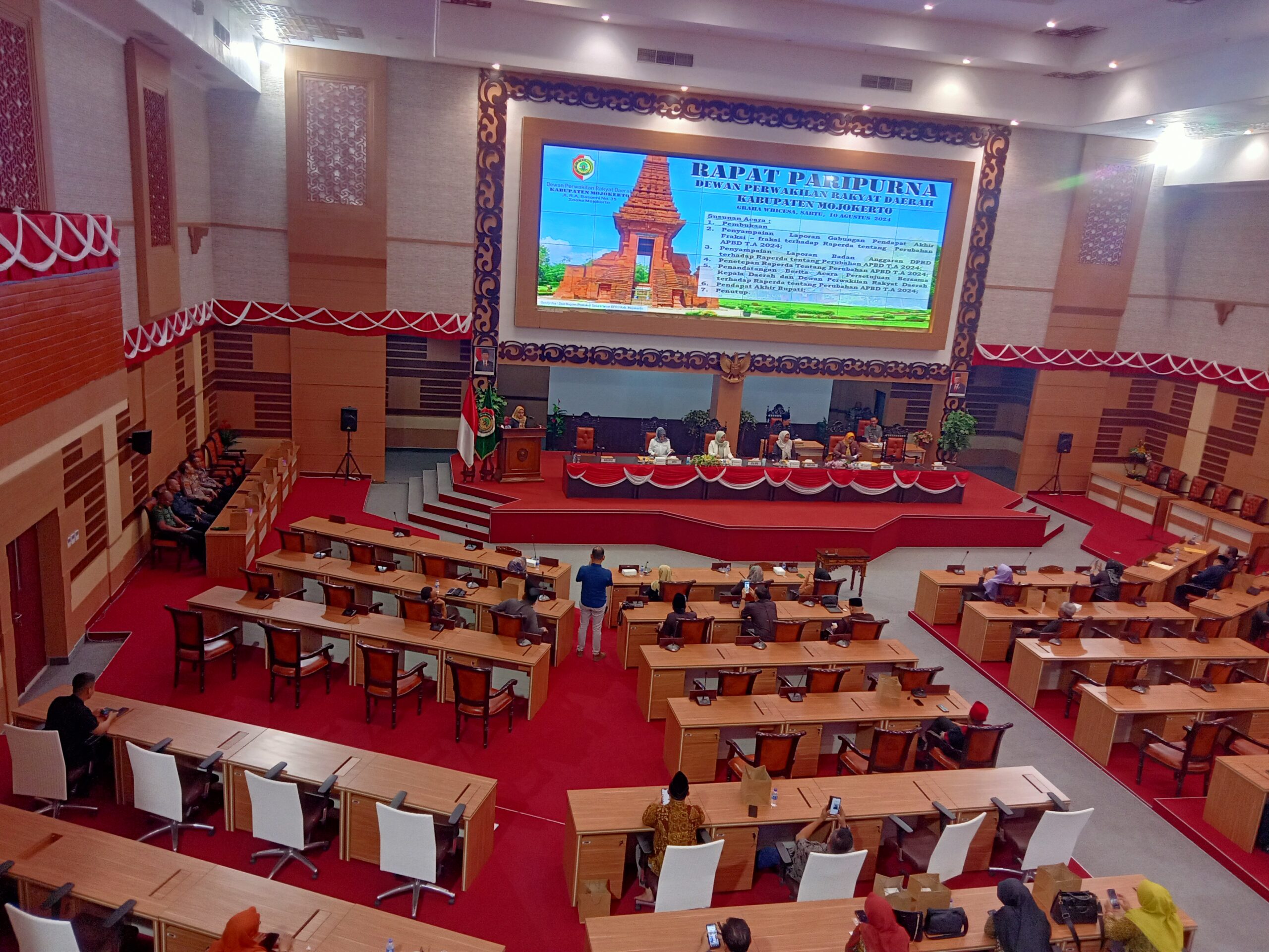 Rapat Paripurna ini dipimpin langsung oleh ketua DPRD Kabupaten Mojokerto Ayni Zuhro, dan didampingi kedua wakilnya.