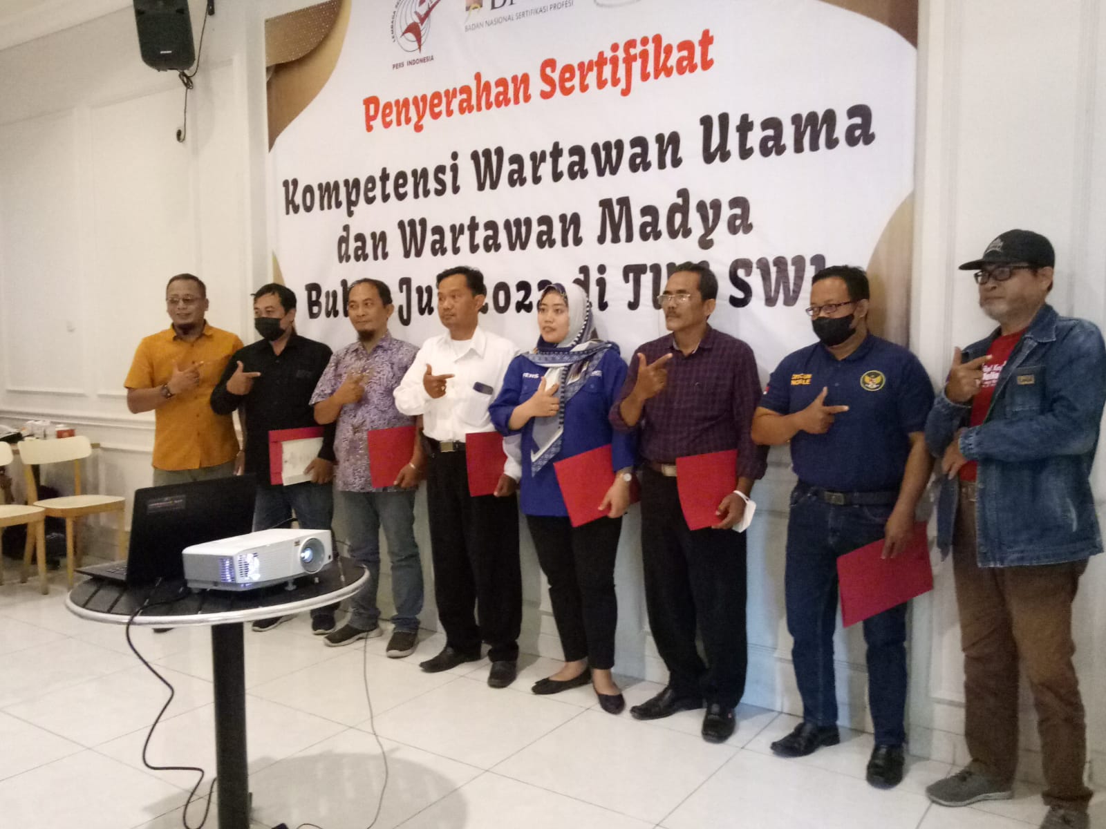 Seperti 18 orang wartawan yang menerima sertifikat berlogo Garuda produk pemerintah pada hari Sabtu, 3/9/2022 siang di Rumah Makan Bu Rudi Surabaya.